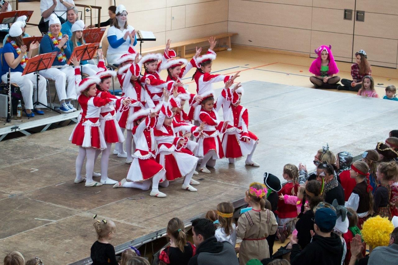 TSV Böbingen: „Hecka Scheisser“ wurde von der kleinen Garde bereits in professioneller Manier präsentiert. Die Vorschulturnkinder mit ihren als Gummibären verkleideten Übungsleiterinnen präsentierten eine tolle Gymnastik mit vielen bunten Reifen auf das Gummibärenlied. Anschließend hatten die „Crazy Dancers“ unter der Leitung von Lisa und Sarah ihren großen Auftritt mit einem wirklich sehenswerten Disco-Tanz auf die Musik von Shakira mit absolut gekonnten Bewegungen. In der Pause kam dann das kleine närrische Volk vollends auf ihre Kosten. Die Musikkapelle bot den kleinen Narren eine tolle Faschingsmusik, es wurde auf der Bühne heftig getanzt, gehopst und getobt. Nach der Pause betraten die Tanzmädels und die Dancing Kids mit viel Schwung die Bühne und zeigten ein buntes Feuerwerk ihrer Tanzkunst auf das Lied „Traum“ von Cro. Einstudiert wurde dieser Auftritt von Schneewittchen Madeleine Lutz. Als Belohnung für diesen Auftritt wurde eine Rakete im Saal steigen gelassen. Die großen Turnmädels um Anja und Ines zeigten eine super Choreographie mit Tanz, Turnen Akrobatik und Trampolin. Nach der zweiten Programmpause kamen die Turnkids unter der Leitung von Franzi und Sarah auf die Bühne. Die Mädels zeigten einen tollen Tüchertanz, welcher das Element Luft darstellte. Zu Gast war auch die Tennie-Garde aus Lautern mit einer gelungenen Vorführung. Auch viele Eltern trugen durch ihre phantasievollen Verkleidungen zum Gelingen des Nachmittags bei. Man sah eine „Gockel-Gang“, Piraten und Herzdamen in der mit vielen hundert Luftballons dekorierten Römerhalle. Aber die kleinen Eisprinzessinnen, Ninja-Kämpfer, Ritter und allerlei Tiere aus dem Dschungel, die wild und heftig zur Musik tanzten und hüpften, genossen es im Mittelpunkt des bunten Treibens am diesem Faschingssonntag zustehen.